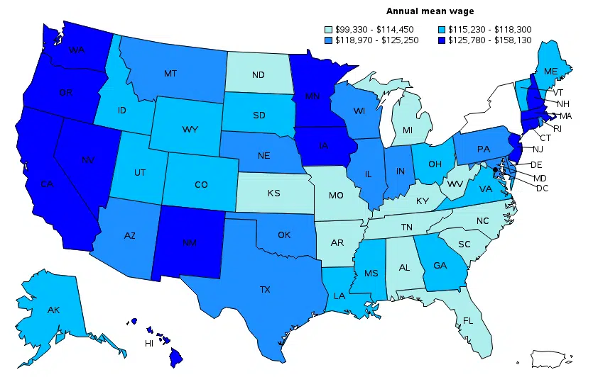 Annual wage of nurse practitioners by state in the USA